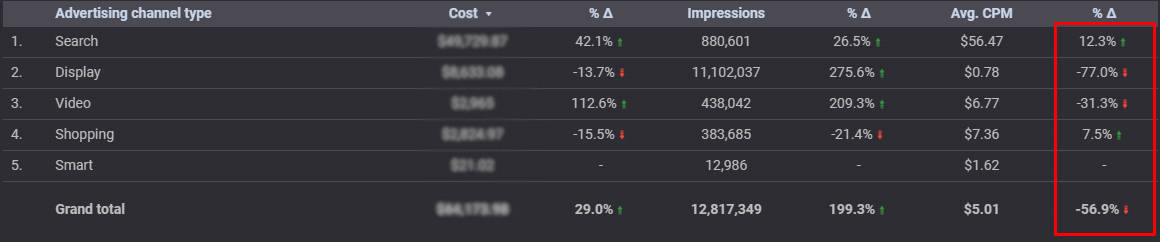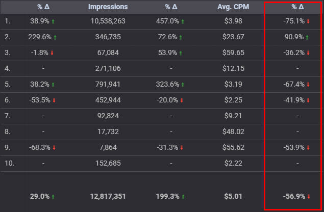 In a nutshell, CPMs are down on digital platforms. Our top clients have seen an average 57% decrease in CPM from the same period last year.